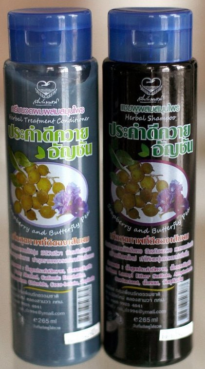 Тайский шампунь и кондиционер с мотыльковым горошком и мыльным орехом по 265 мл.