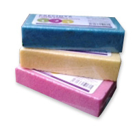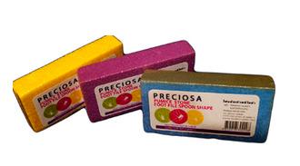 Пемза мелкообразивная, лёгкая, разноцветная. В ней не заводится грибок, она имеет свойство постепенно уменьшаться, на коже ее видно, что очень удобно в применении.