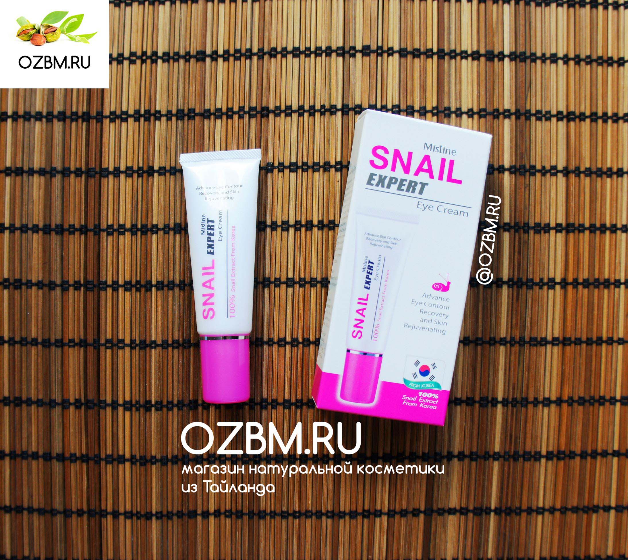 Инновационный крем для зоны вокруг глаз, производимый популярной косметической компанией «Mistine» на основе экстракта слизи улитки, коллагена, витамина В3, экстракта корня императы цилиндрической, а также масел жожоба, дерева ши и семян японской камелии. Специалисты в области косметических средств по уходу за кожей лица давно выяснили, что экстракт из слизи улитки Helix Aspersa - это просто кладезь полезных веществ и микроэлементов, необходимых коже.